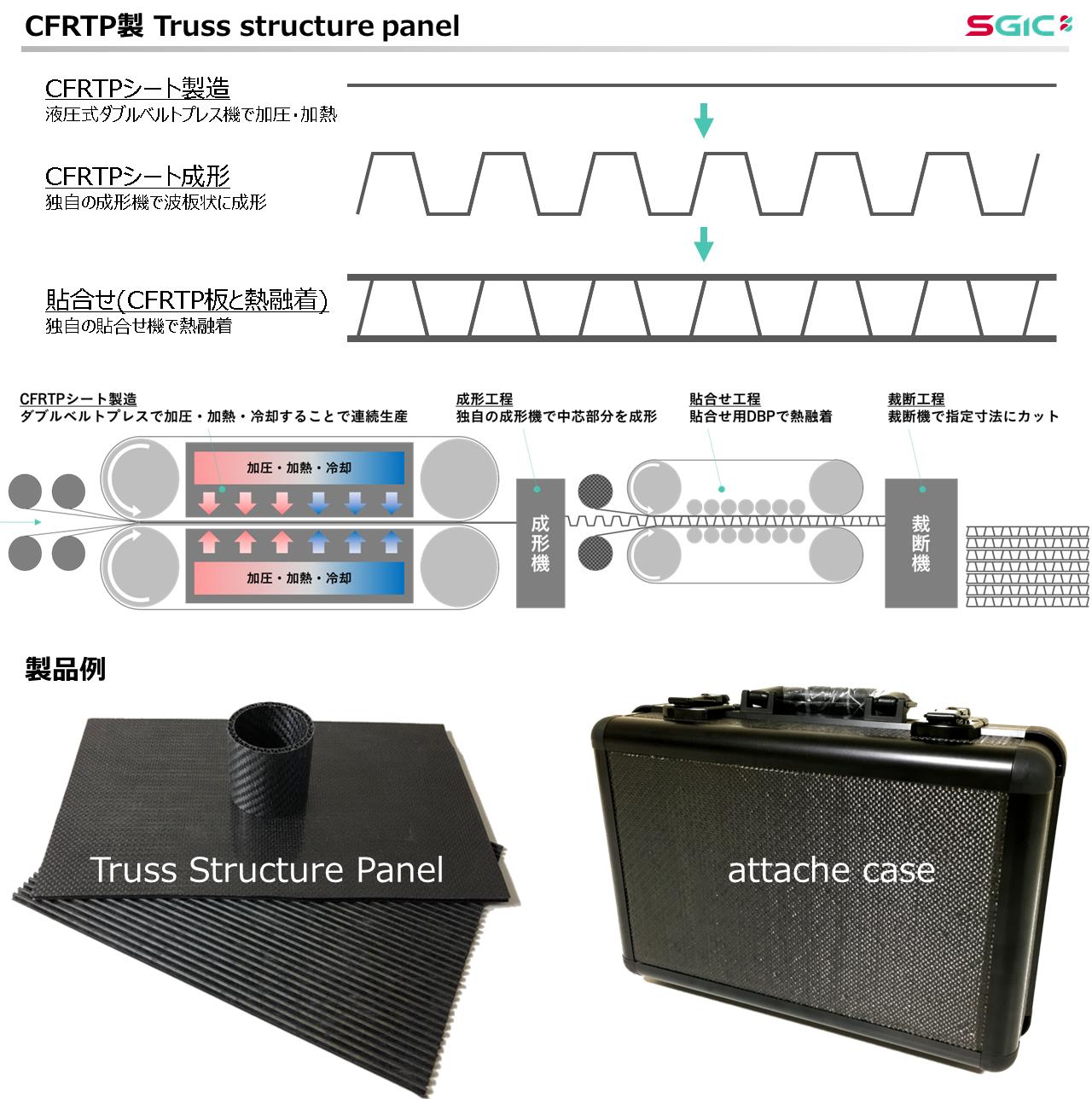 中芯部分も含め、すべてCFRTPのため、軽量・高強度・成形し易い。
