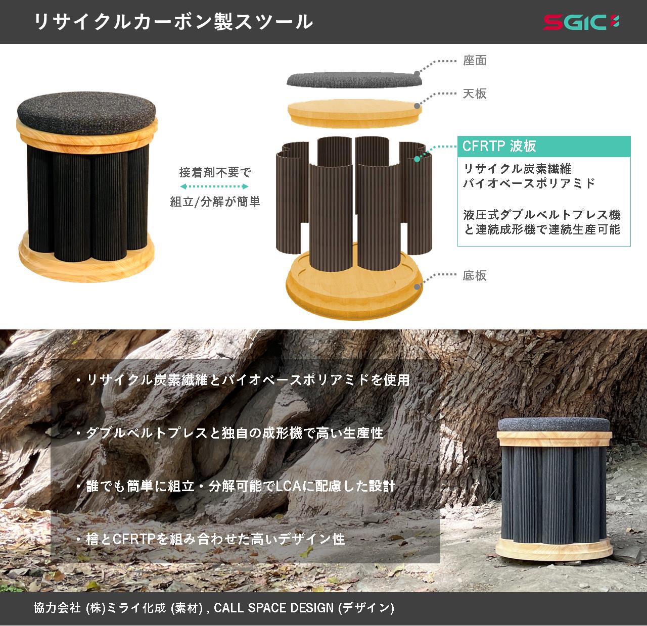 リサイクルCFRTPを波板状に成型し、スツール(椅子)を製作。