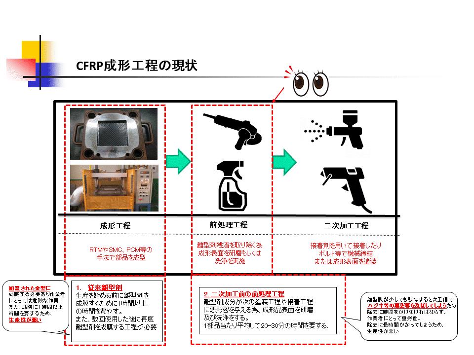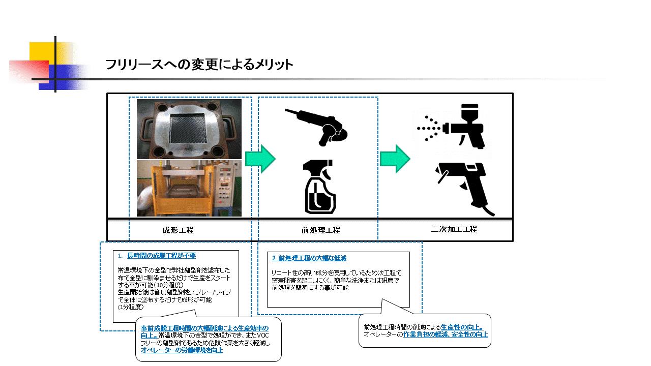 塗装、接着工程前の前処理時間を従来の硬化膜離型剤比較で50%以上削減