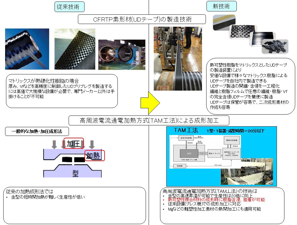 素形材(UDテープ)加工とTAM成形法の活用によるCFRTPの素形材から成形品までの一貫生産