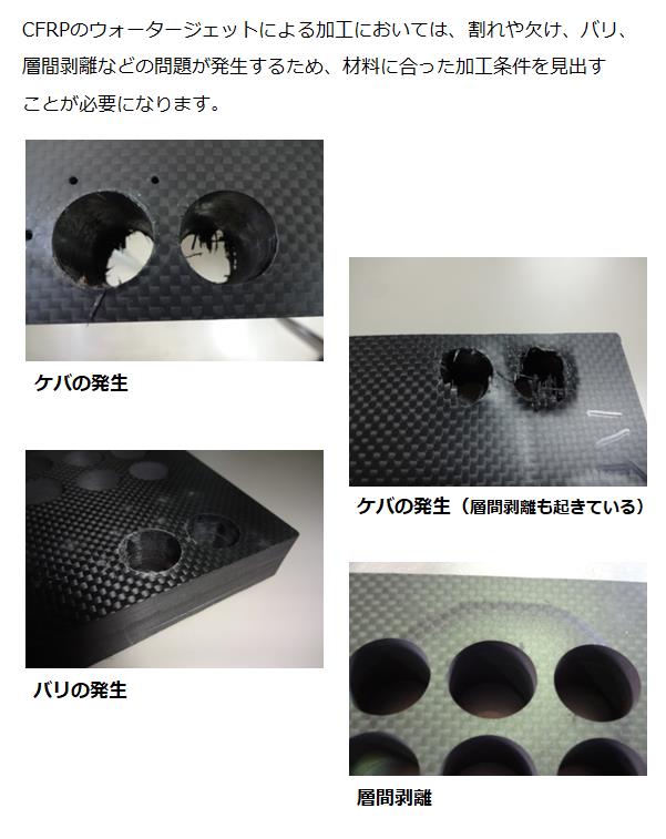 大型、小型の2台のウォータージェットにより、CFRPの切削、穴開け加工を高精度で行うことができます。