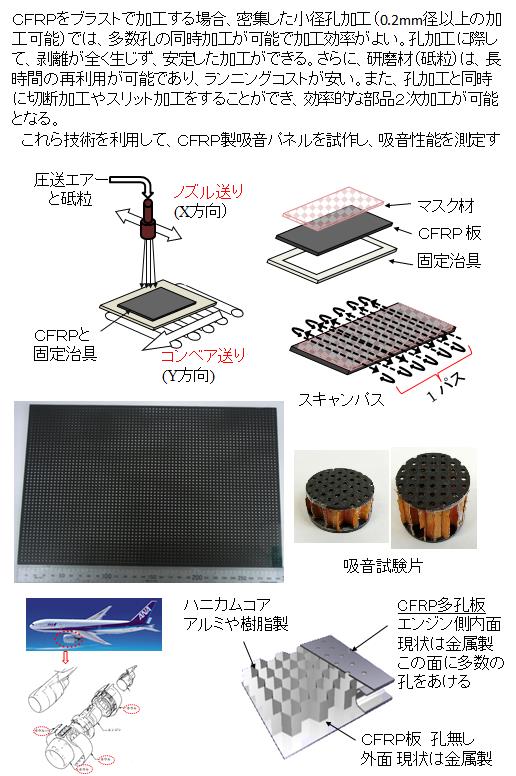 ・上記技術を利用して、アルミ製と同等以上の吸音性能を持つCFRP製吸音パネルを作成可能