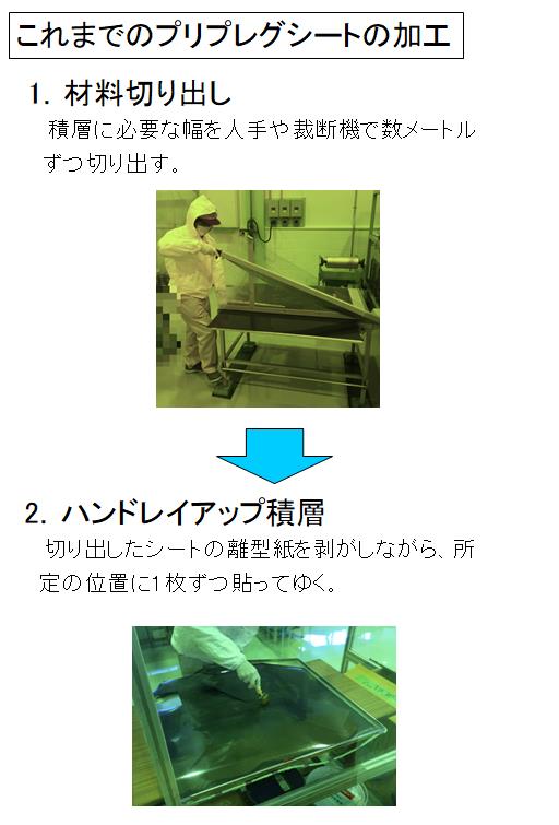 | 活用例 | ・航空機の構造材部品や自動車の構造材および外板部品のCFプリプレグ加工