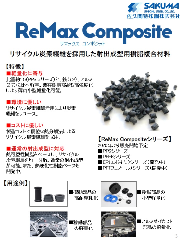 環境にやさしいリサイクル炭素繊維を採用した射出成型用炭素繊維複合材料