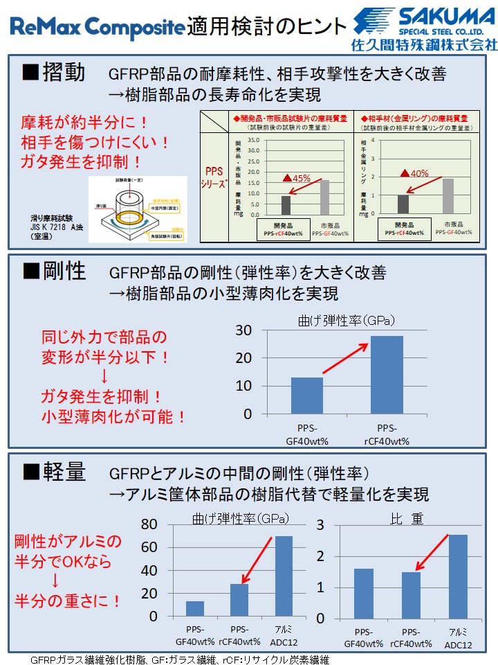 ◆摺動:ガラス繊維添加GFRP部品の耐摩耗性、相手攻撃性を大きく改善→樹脂部品の長寿命化を実現。