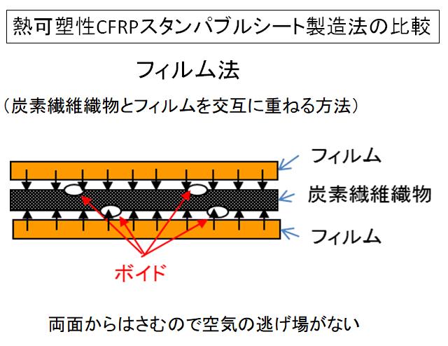 ・ラミネートシートを積層してCFRP板を成形することで樹脂の含浸性向上とボイド率の低減が可能