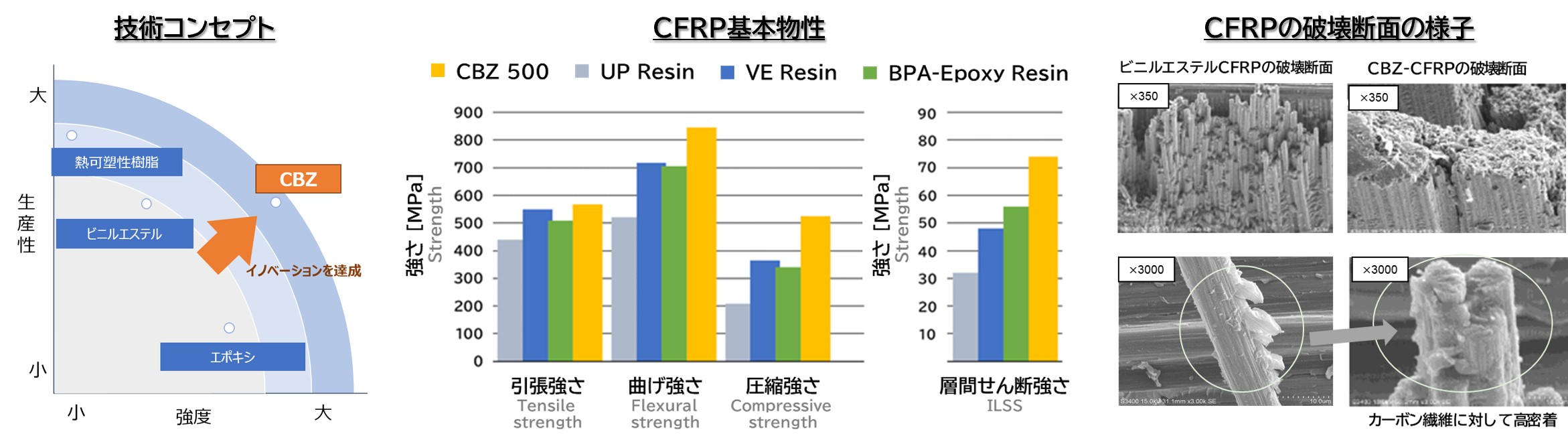 ▶CBZを使用したCFRPは優れた機械物性を示します。