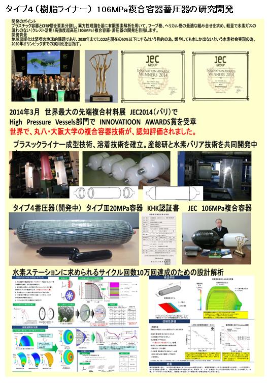 - ・106MPa蓄圧器、45Mpa輸送用複合容器の開発、70MPa自動車用燃料タンクの開発に関心のある企業、研究機関